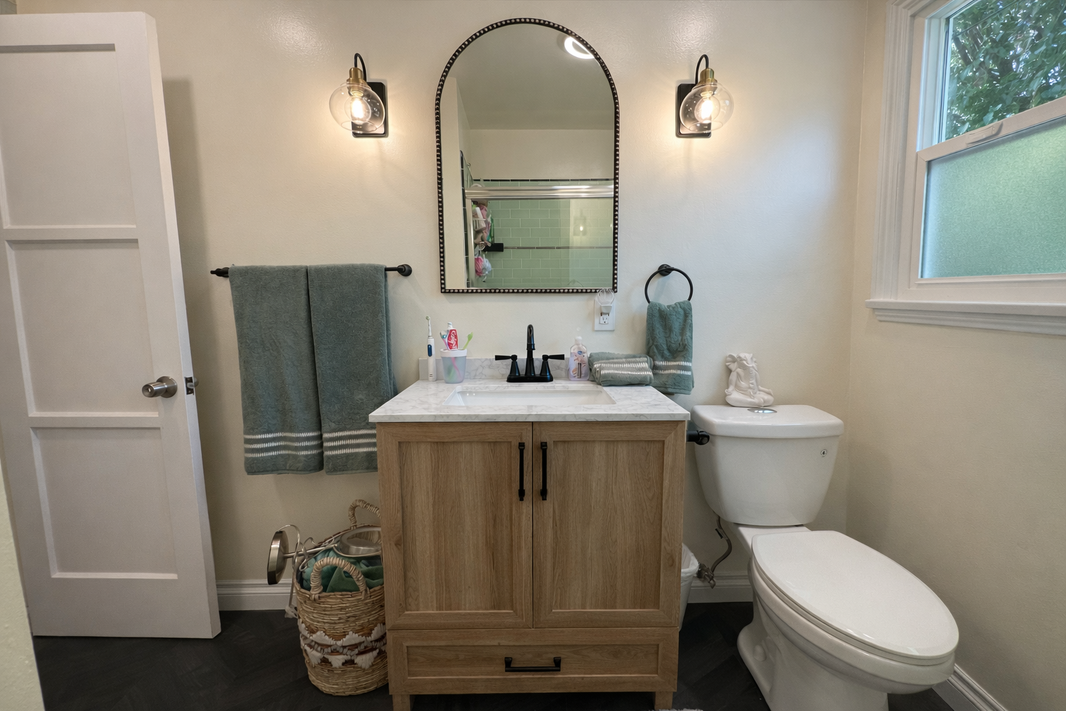 This Lake Balboa bathroom upgrade proves that small spaces can deliver big impact. Thoughtful layout improvements, a warm wood vanity, and sleek black fixtures elevate the room without overwhelming it. Strategic lighting and a clean, neutral palette brighten the space, while smart storage keeps it functional. The result is a compact bathroom transformed into a refined, efficient retreat designed for modern living.
